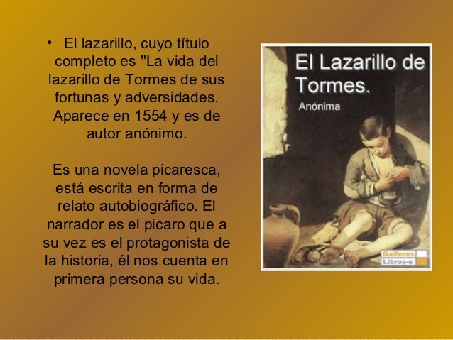 Análisis literario del lazarillo de tormes a. La vida de lazarillo de tormes y de sus fortunas y adversidades (más conocida como lazarillo de tormes) es una novela española anónima, escrita en primera persona y en estilo epistolar (como una sola y larga carta), cuya edición conocida más antigua data de 1554. La vida de lazarillo de tormes y de sus fortunas y adversidades.